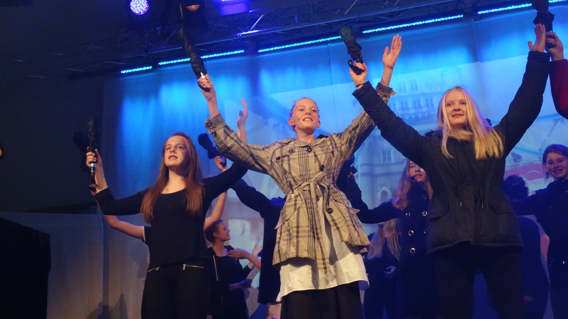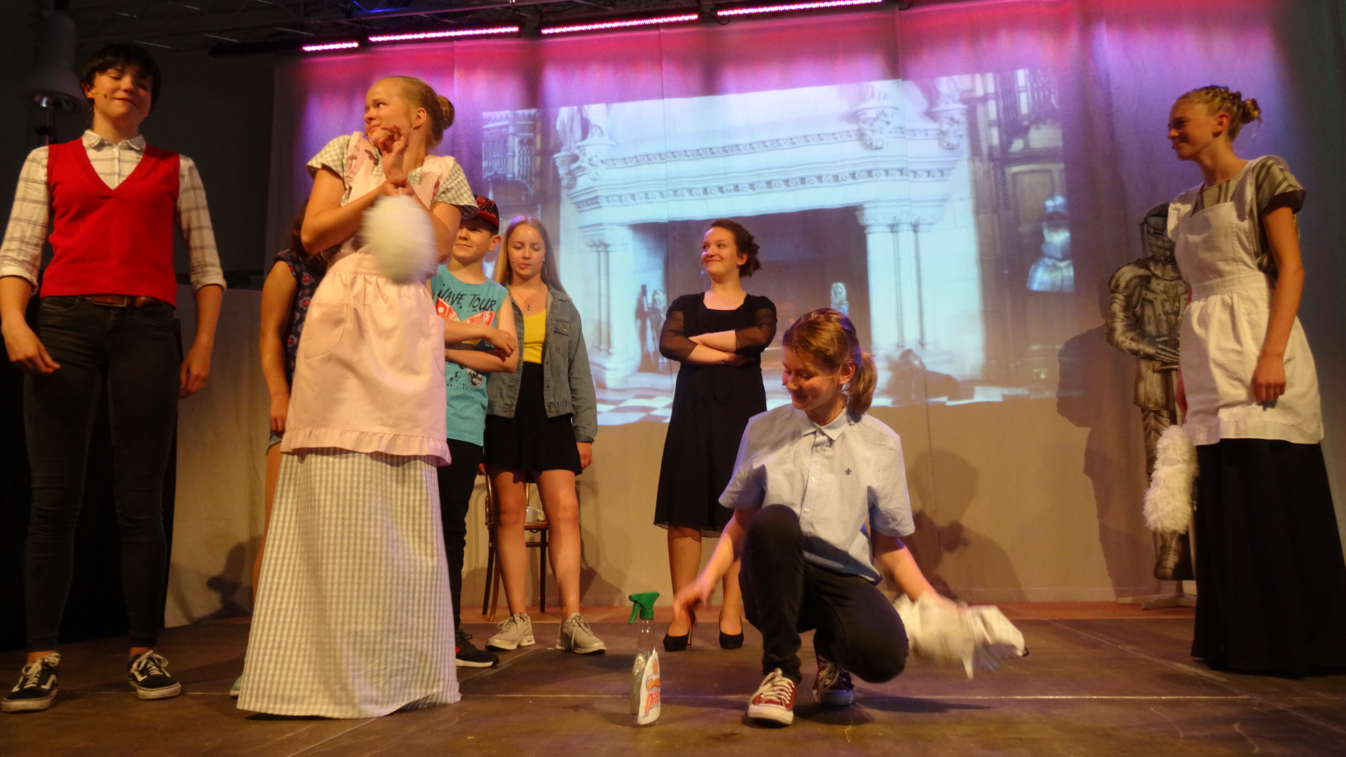 Canterville 2Die Story von Oskar Wilde gibt also genügend Spielraum für wirkungsvolle Szenen, witzige Dialoge und berührende Momente und das nutzt die Musical-AG um Musiklehrerin und Leiterin des Projekts Anja Börner, unterstützt von Rolf Bernhard in der Regie, und sie verleiht so dem klassischen Text mit der modernen Musik von Michael Glotzbach ihre eigene Note. Entstanden ist eine kurzweilige Aufführung, in der die Darstellerinnen und Darsteller zeigten, wie viel Spaß ihnen ihr Spiel macht und wie gut sie die gesprochenen und gesungenen Texte beherrschen.