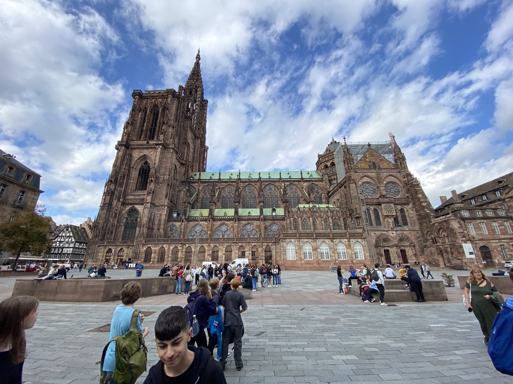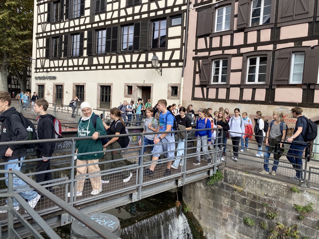 Fast 100 Schülerinnen und Schüler der Jahrgangsstufe 8 verbrachten am Dienstag, den 18. Oktober 2022 einen unerwartet sonnigen Tag im elsässischen Straßburg. Begleitet von ihren Französischlehrerinnen und -lehrern Frau Balthes, Frau Franz, Herrn Schäfer und vertretungsweise Frau Hagmann machten die Schülerinnen und Schüler zunächst eine von den Lehrkräften geführte Stadtführung, die sie an den Hauptattraktionen Straßburgs vorbeiführte (Straßburger Münster, Maison Kammerzell, Gerberviertel La Petite France, Palais Rohan und das Alte Zollhaus L’Ancienne Douane).