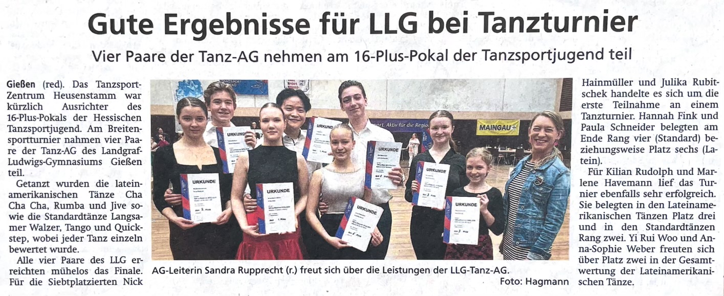 Gießen (pm). Die Schülerinnen und Schüler des Landgraf-Ludwigs-Gymnasiums (LLG) sind nicht nur bei diversen Bundeswettbewerben in naturwissenschaftlichen Disziplinen erfolgreich, sondern haben jetzt auch ihr Können auf einem ganz anderen Parkett unter Beweis gestellt.